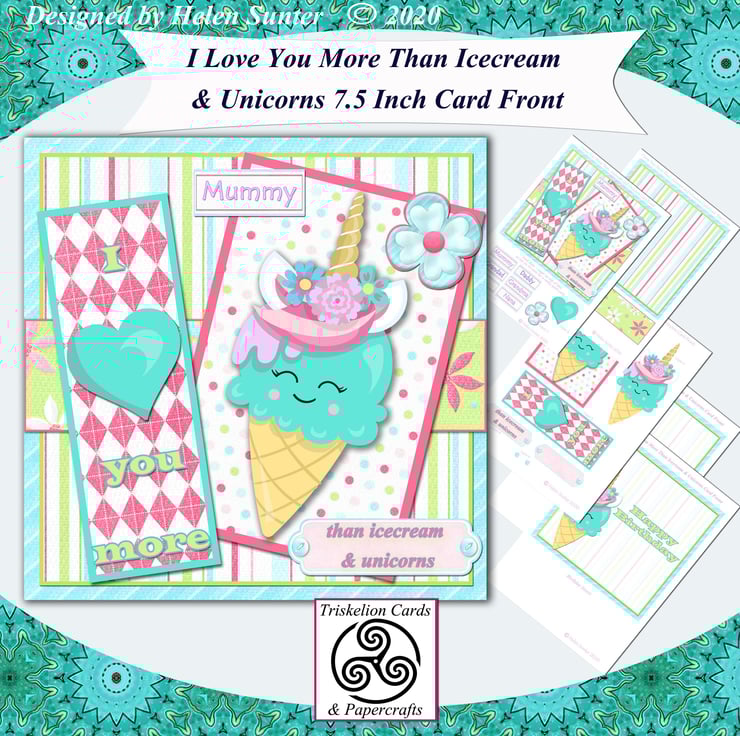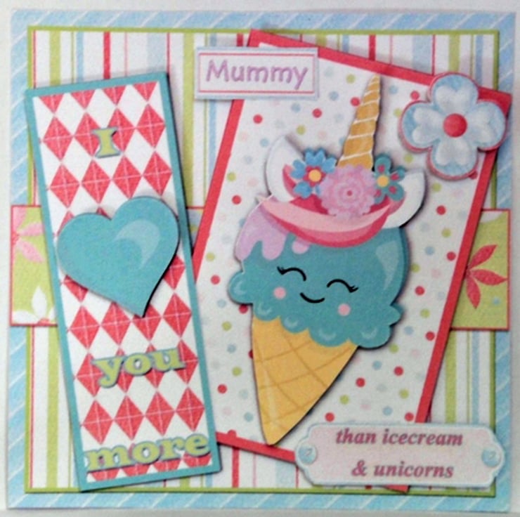 Make Your Own I Love You More Than Unicorns and Icecream 7.5 Inch 3D Decoupage Card Front card making kit with Matching Insert