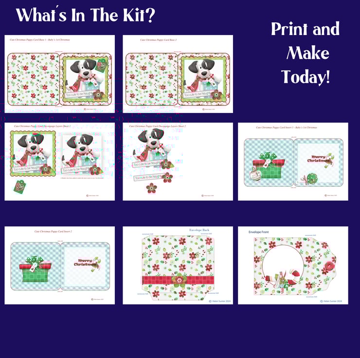 There are two sheets of optional decoupage layers and two inserts. One with a baby's 1st Christmas bauble and baby's rattle, and one without.