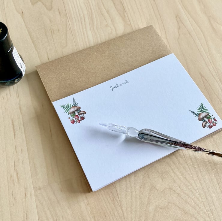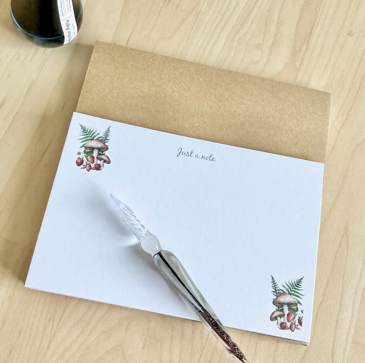 Watercolour print pack of 12 A6 Flat Notecards featuring our Wild Strawberry design 10.5 x 14.8 cm (approx) note cards and Kraft envelopes.