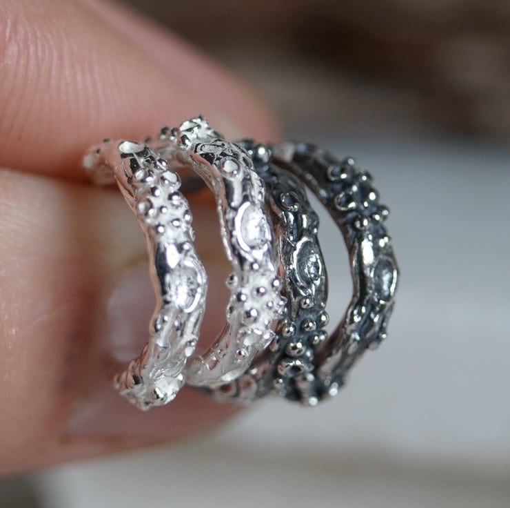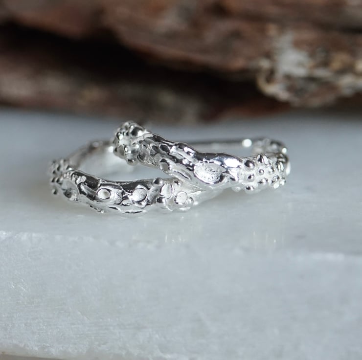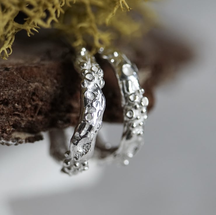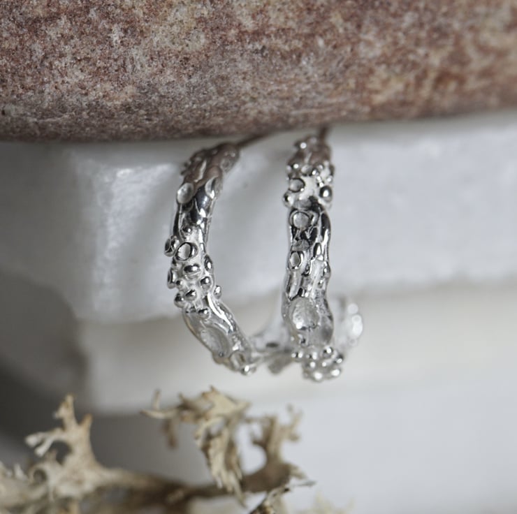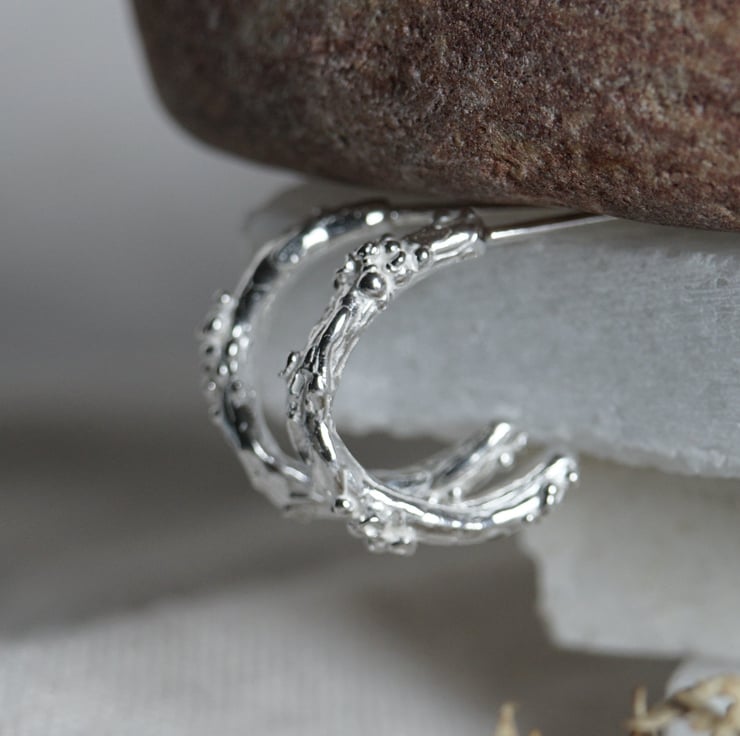 Inspired by mighty ancient oak trees, these hoop earrings feature lichen clusters and twisted, knotty bark details.