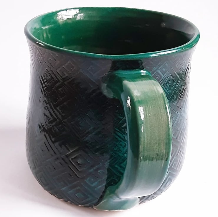 Dark Turquoise Patterned Mug - Hand Thrown Stoneware Ceramic Mug