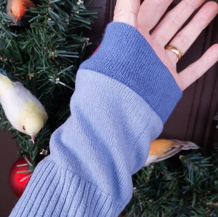 These two blues wrist warmers are so soft and cosy! The accessories I make are made from 100% cashmere garments that I have repurposed. These garments are used cashmere cardigans and jumpers which I wash, slightly felt and de-bobble to make the fabric beautiful again. The wrist warmers measure approximately 26cm ( 10 inch) in length and 9cm (3.5 inch) diameter and have stretch in them. They fit an average hand. These wrist warmers would also make a wonderful gift for someone!