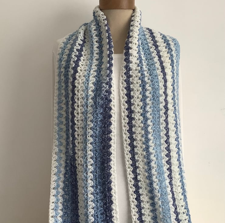 SCARF, neckwarmer. 'Coast Path' Soft , lightweight alpaca blend . Blue, white .