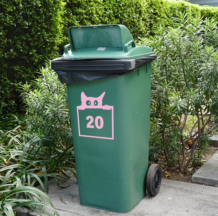 Transform your ordinary wheelie bin into a delightful and personalised piece with our Peeking Cat Bin Sticker! Featuring an adorable cat peeking over a square, this decal adds a touch of charm and makes your bin instantly recognisable.