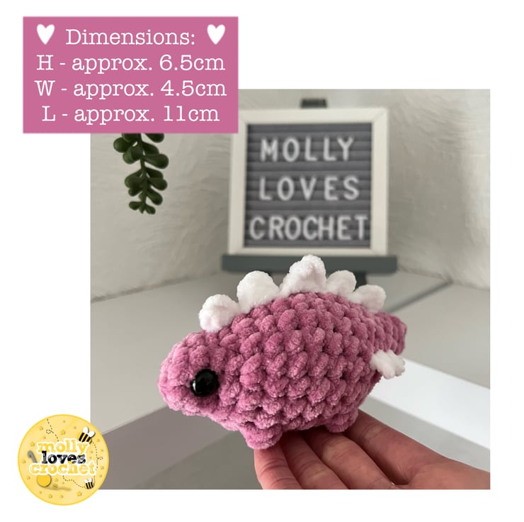 Handmade crochet mini rose pink stegosaurus made with plush yarn