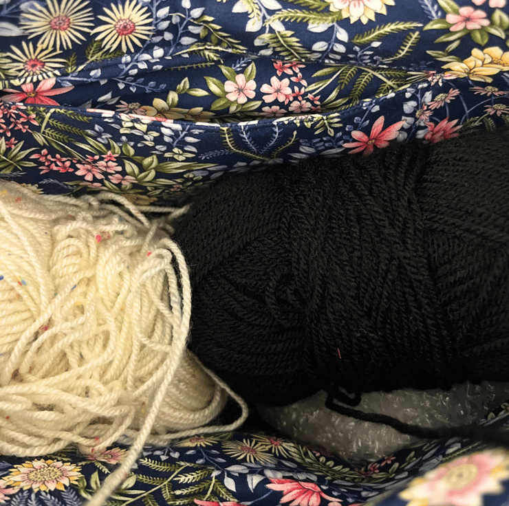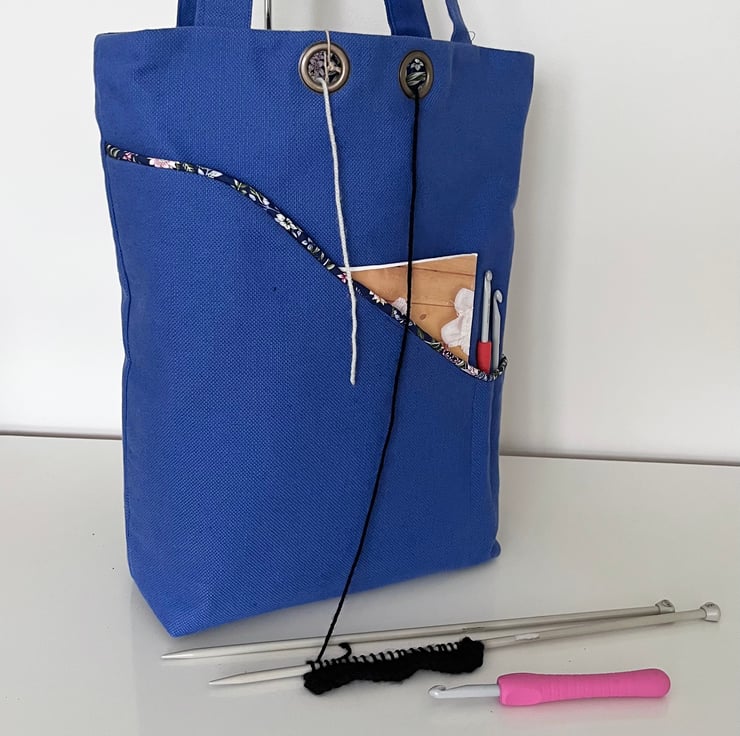 Inside the bag there is plenty of room for your wool and your piece of knitting plus a deep pocket the height of the bag allows you to store your knitting needles safely,There is an open pocket big enough to store your scissors, tape measures and any other haberdashery you will need.
