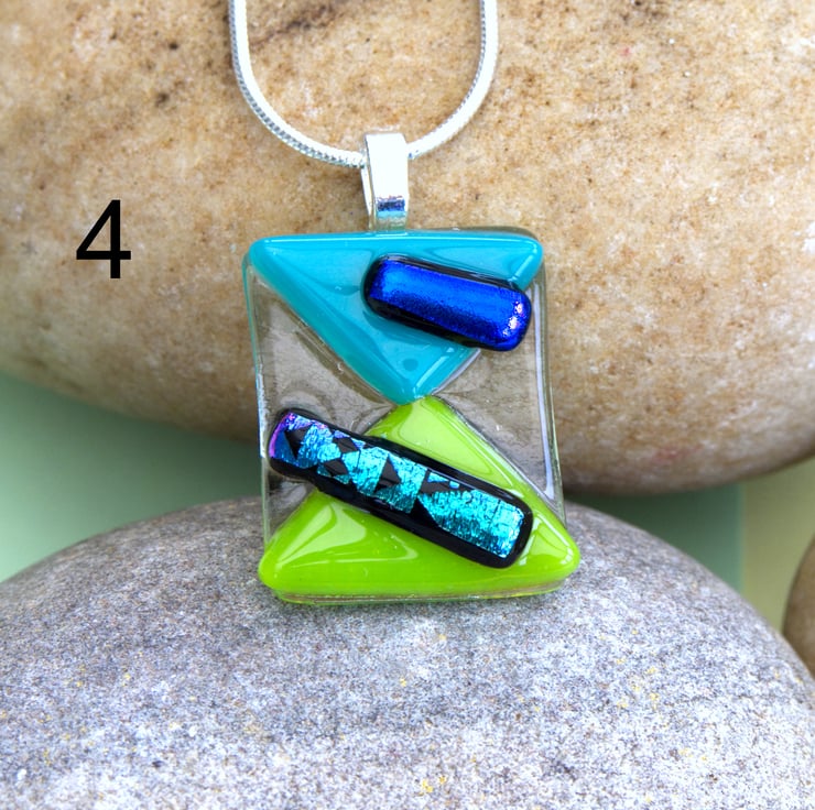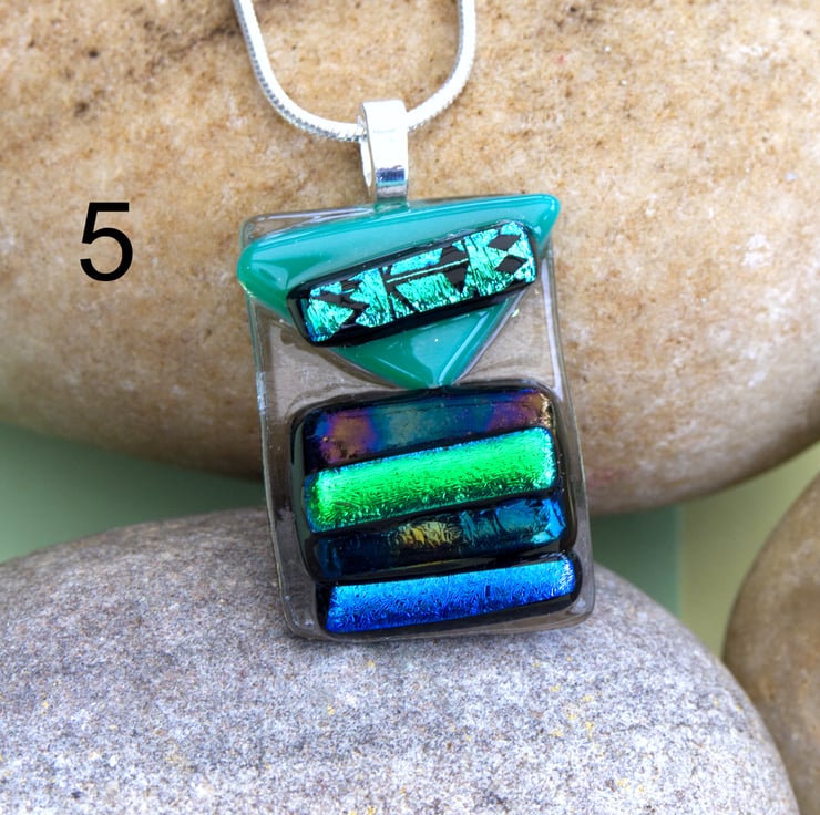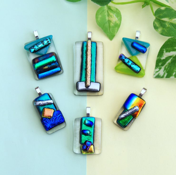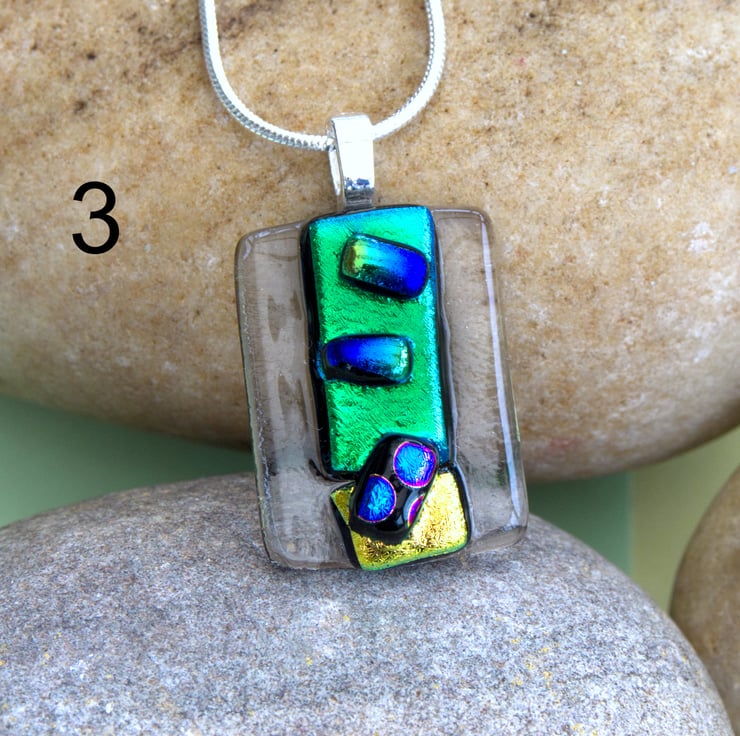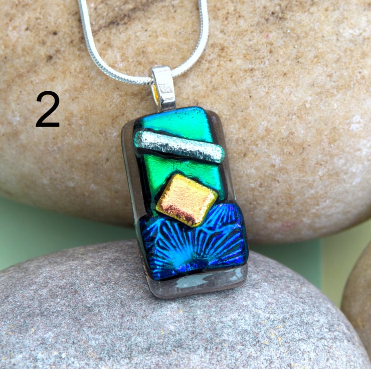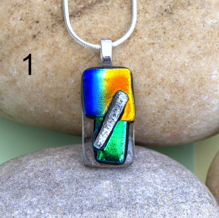 All pendants will come with your choice of 16 inch or 18 inch silver plated snake chains and packaged in a black jewellery box. Please note that the colours you see on the screen might be a bit different to the actual pendant. Dichroic glass changes colours at different angles as well as screen colours being different. If you would like a different look at the pendants then feel free to drop me a message and I can take additional photos.