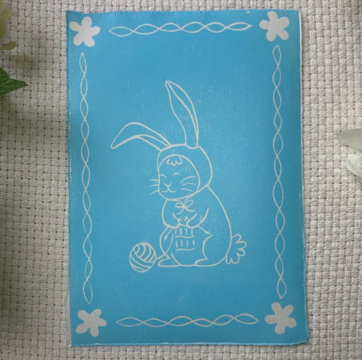 Knitting Bunny Lino Print