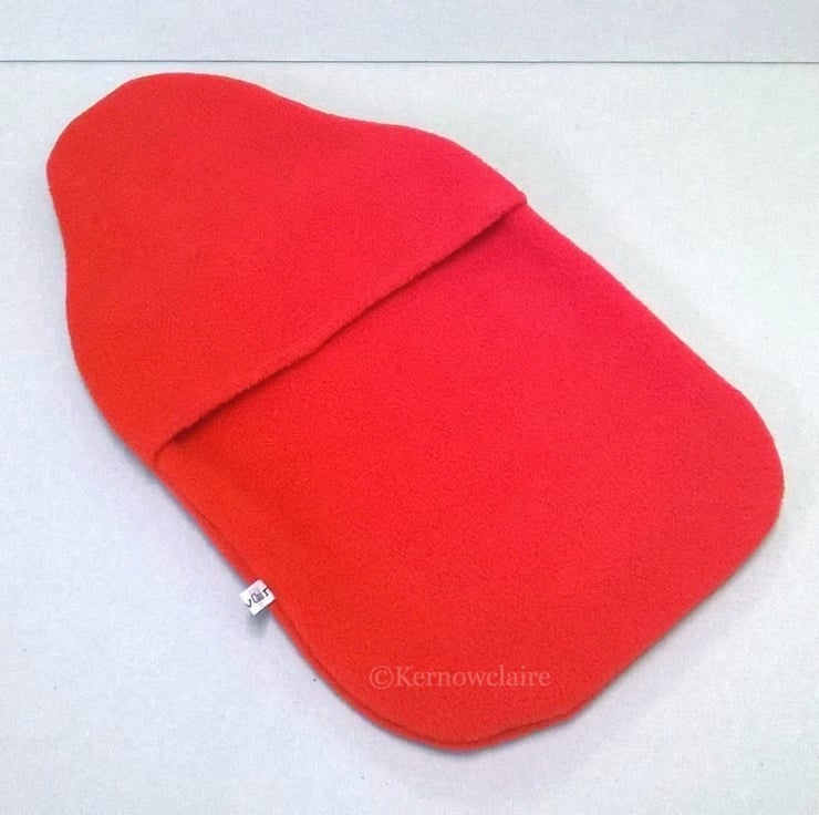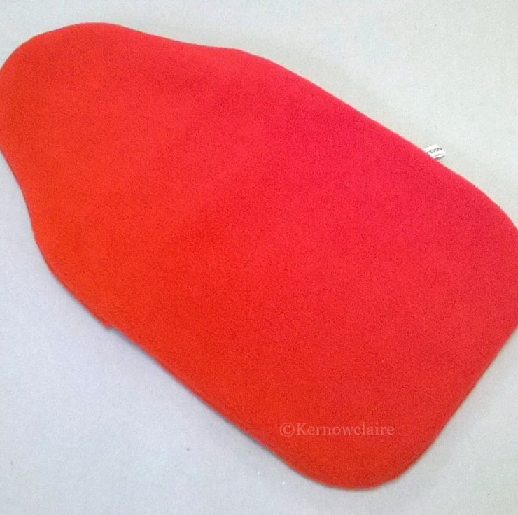 This is a lovely hot water bottle cover, handmade in a red fleece fabric.