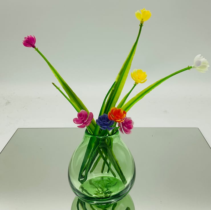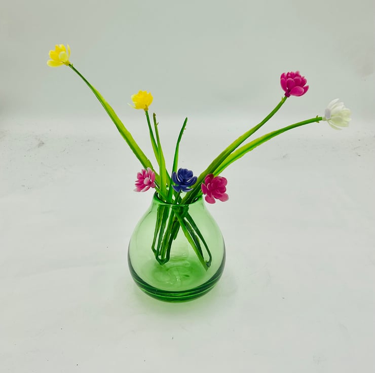 I had lots of requests from people asking for a little vase that could accommodate the last flowers of the bunch or the orphans from the garden and this was my response but it wasn’t until I was next to an antique dealer at a show that I discovered they have another name . The Victorians brought snowdrops to this country and loved to have bunches of them in little vases just like this. So for the early months of each year they morph into Victorian Snowdrop Vases and for the rest of the year they are all kinds of flowers tiny vases
