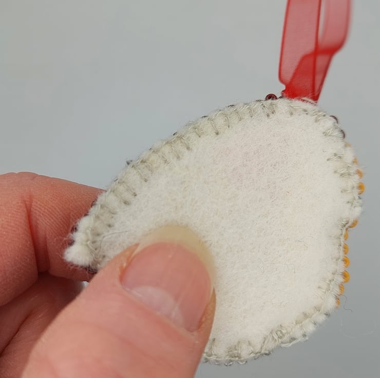 Add a touch of handcrafted charm to your holiday decor with this beautifully bead-embroidered robin decoration. Meticulously stitched by hand onto soft felt, this festive ornament features a delicate design of a robin in vibrant colors, creating a timeless piece that will shine on your Christmas tree or around the home.