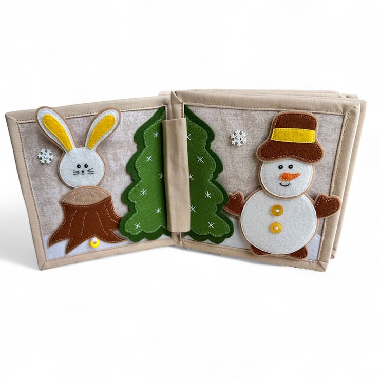Page 1: Peek-a-boo rabbit with a snowflake on elastic.