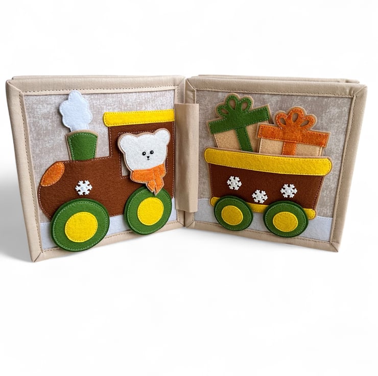 Page 4: Wheels on velcro, gifts in a trailer.