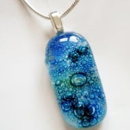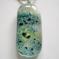 Hand crafted bubbly pendant with turquoise, blue and pale yellow bubbles.