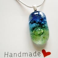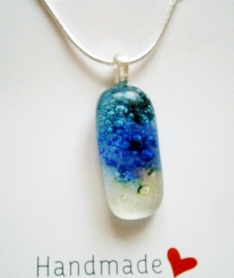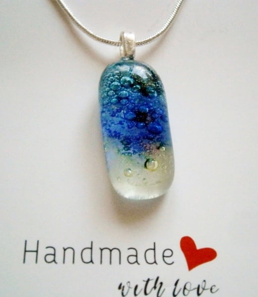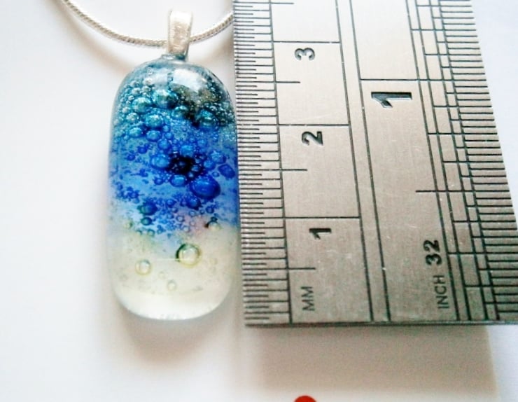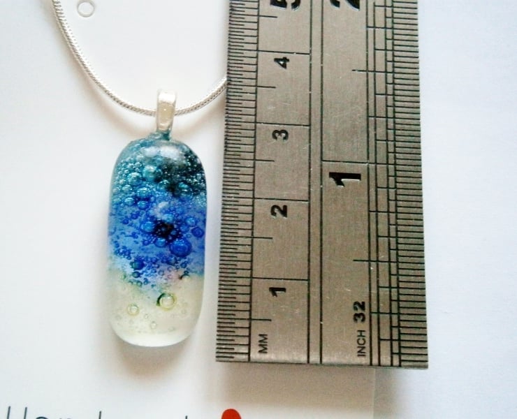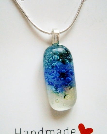 Due to the random effects of the powders used to create the bubbles this pendant is completely unique.