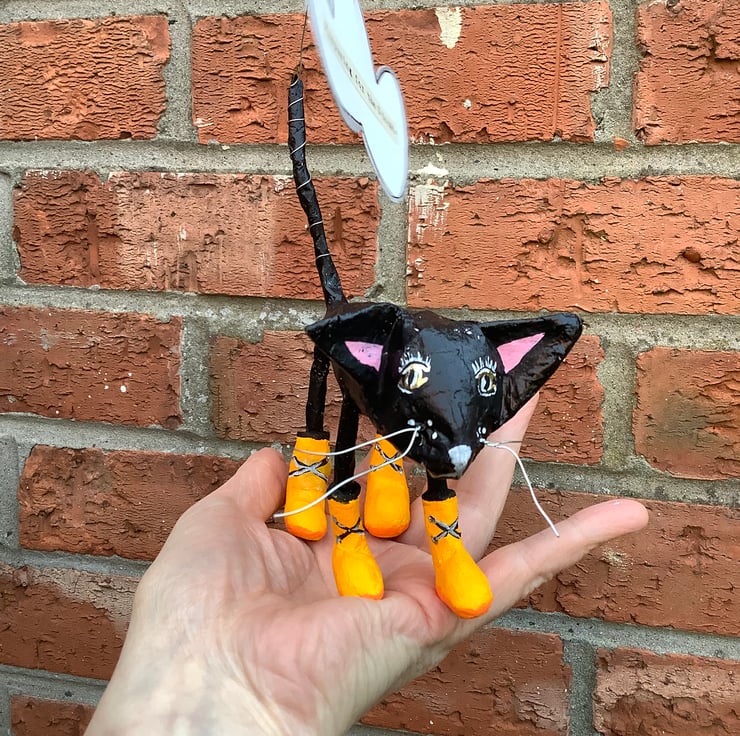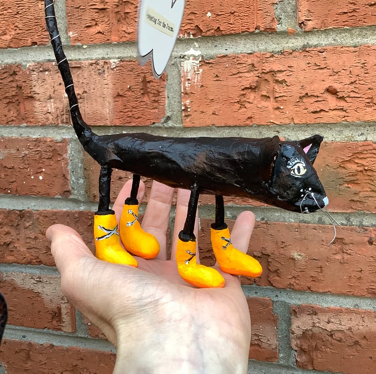 Papier-mâché cat sculpture. Quirky, fun. Sculpture. Black cat. Gift.