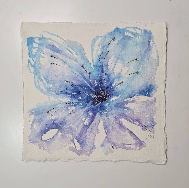 It is one of 3 in a series of abstract flowers painted on Khadi paper.