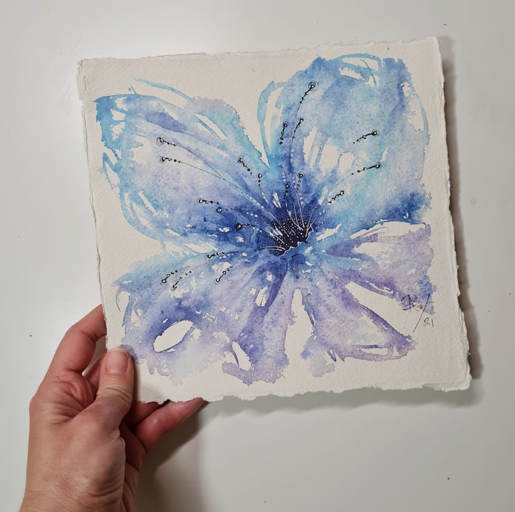 Original intuitive watercolour painting - delicate and simple with pen line art for detail.