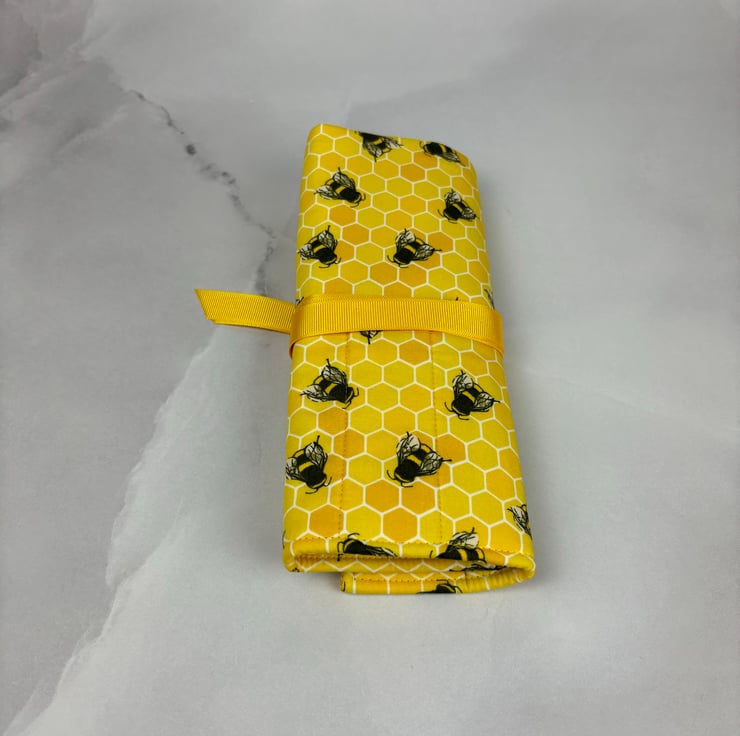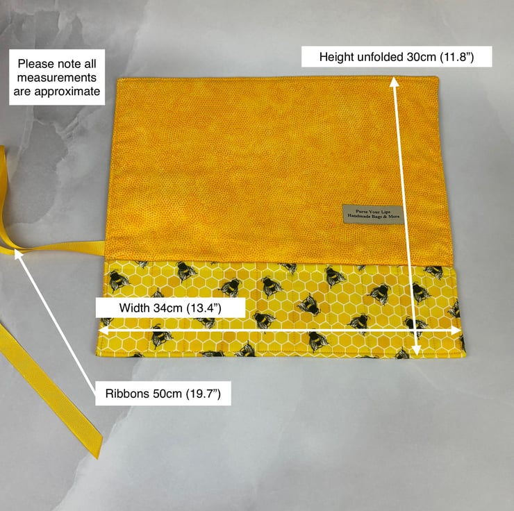 This unique tool roll is individually made by me in my relaxing and tranquil little West Sussex garden studio so the pattern placement may vary slightly.