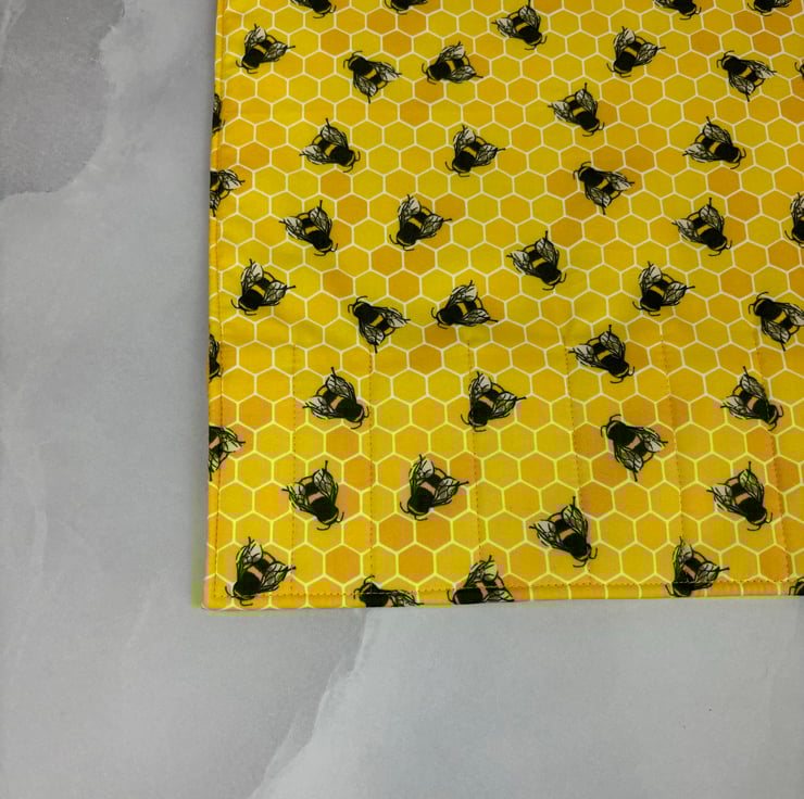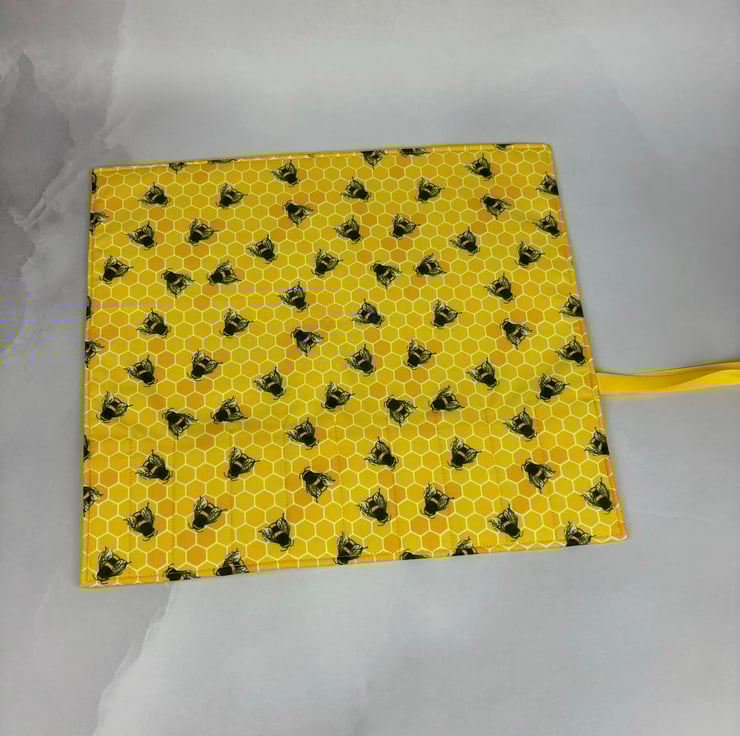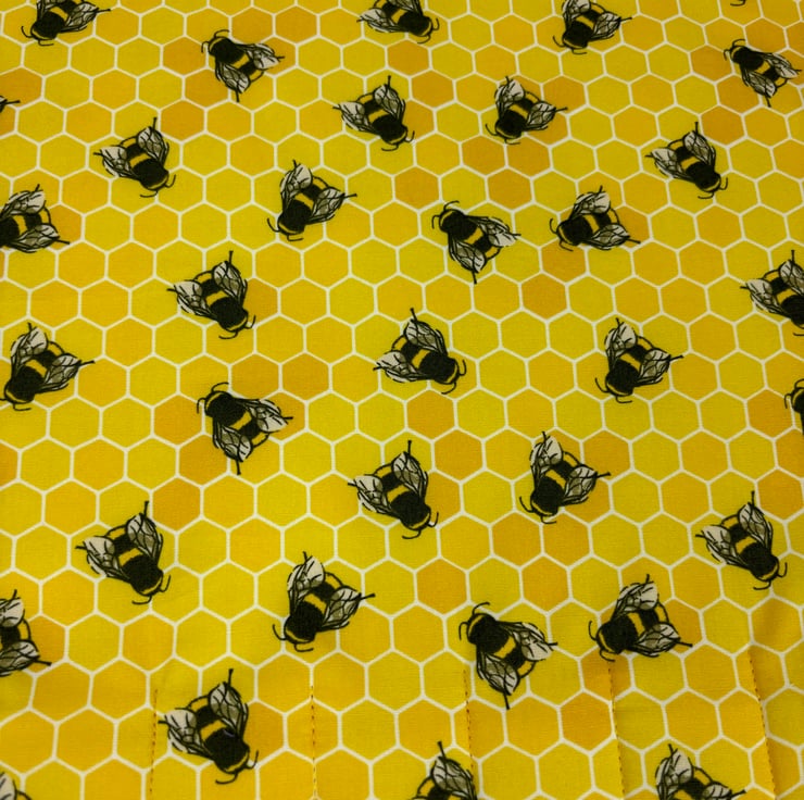 Handmade fabric wrap in a fun brightly coloured honeycomb patterned cotton fabric and lined in a rich yellow mottled cotton.