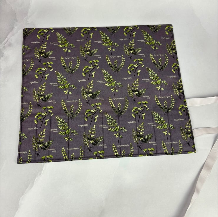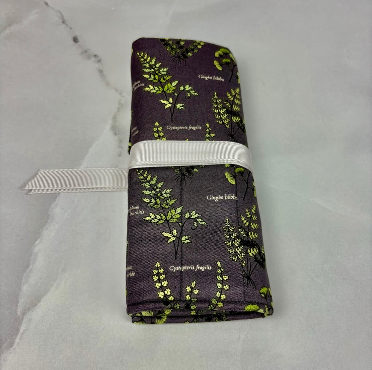 This unique tool roll is individually made by me in my relaxing and tranquil little West Sussex garden studio so the pattern placement may vary slightly.