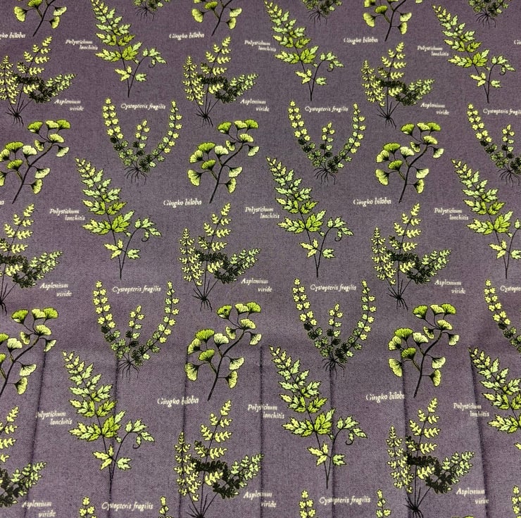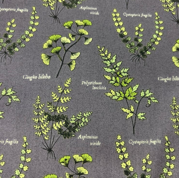 This is a really unusual fabric with its ferns and ginkgo leaves with the latin names beside it. Ive not seen anything like this before so had to have it.