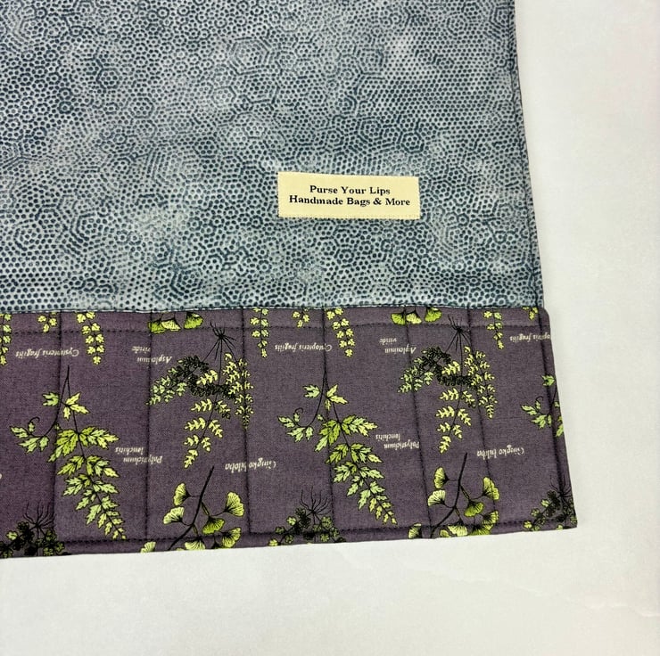 Handmade fabric wrap in a beautiful botanically inspired cotton fabric and lined in a grey patterned cotton.