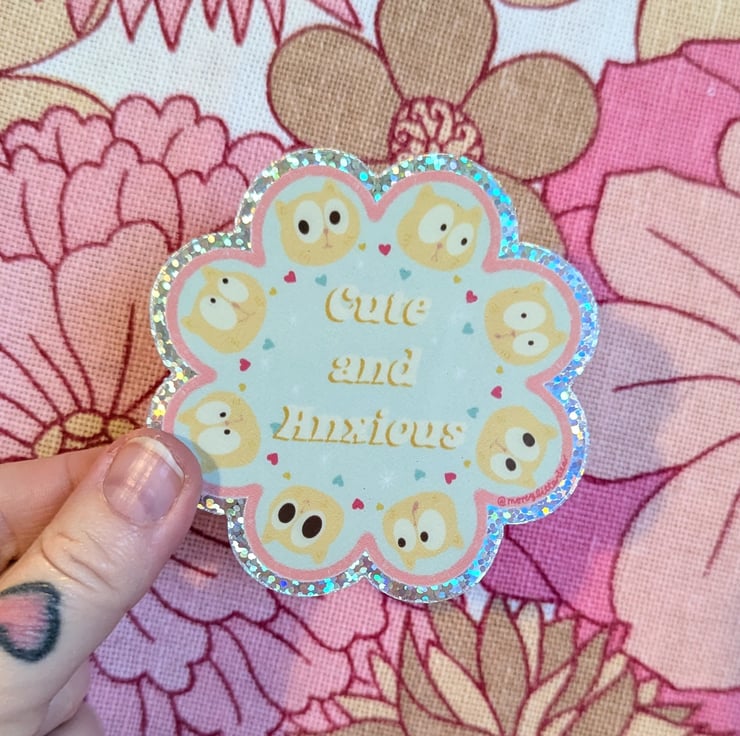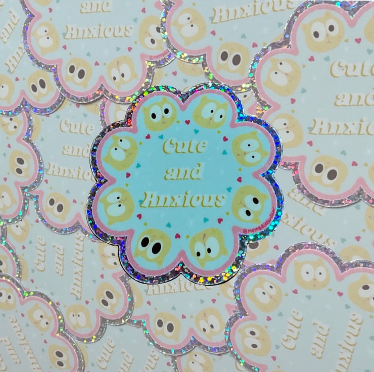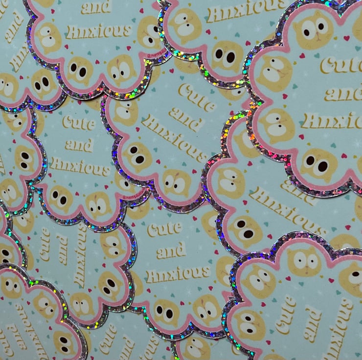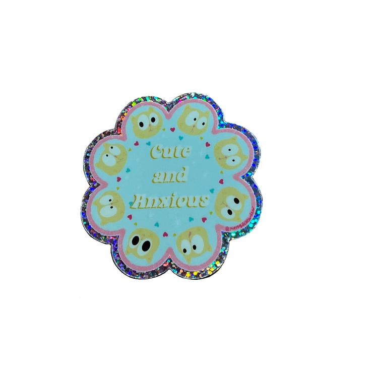 3” x 3” die cut sticker made from premium glitter holographic vinyl and permanent acrylic ink.