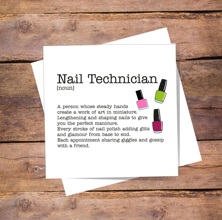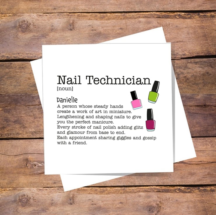 Perfect thank you, good luck, birthday card for your wonderful nail technician. Can be personalised on front of the card, add name to personalisation box if wanted.