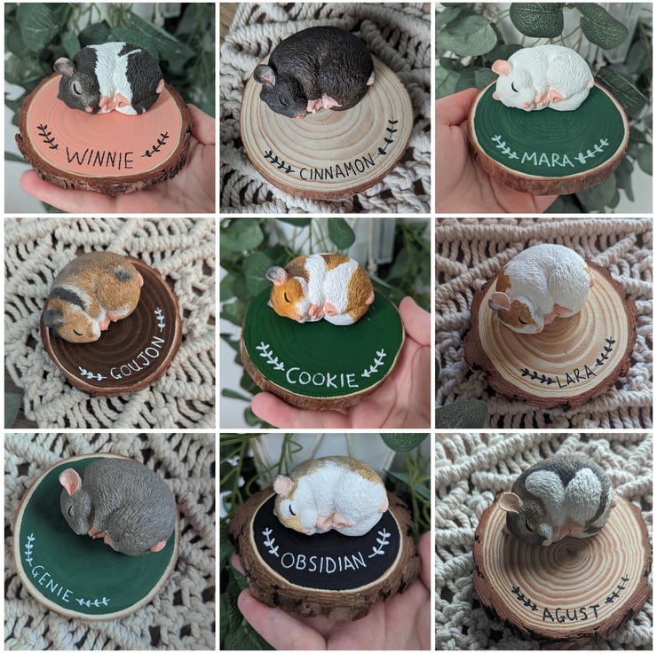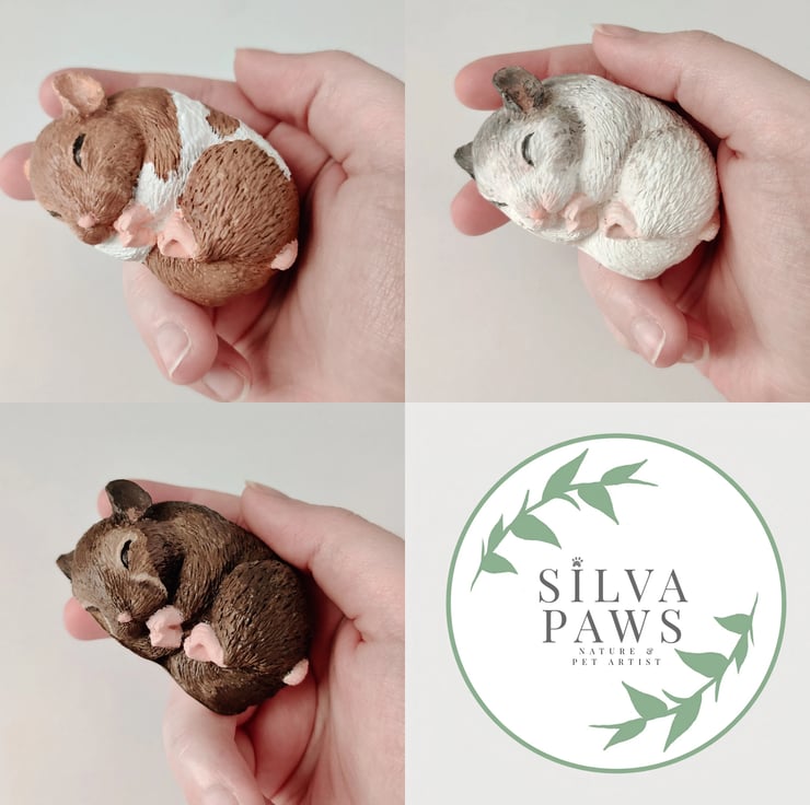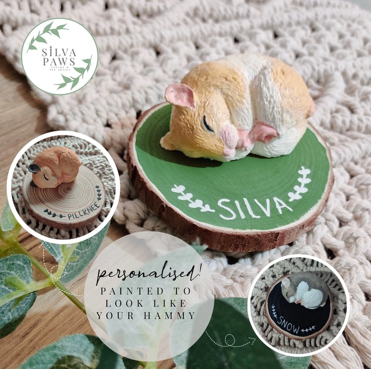 These lovely sculptures are made using stonecast. Once set, I then carefully hand paint them to resemble your little ham. I will need reference photos to work from.