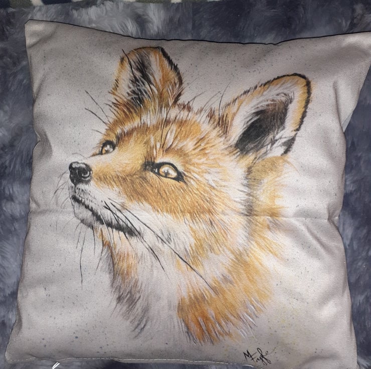 fox print on the cushion double sited size 35.6 cm -35.6 cm, it is easy to take cover off and wash as there is zip