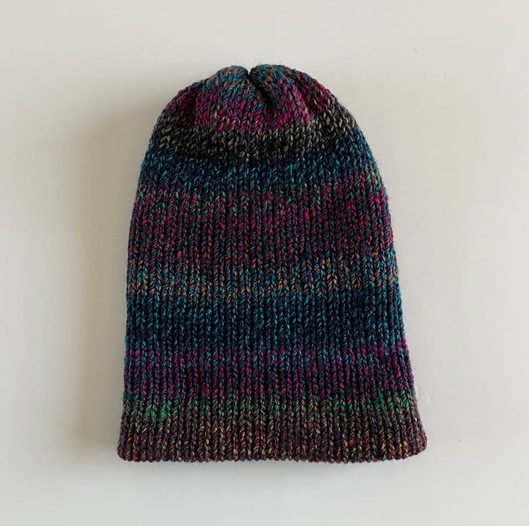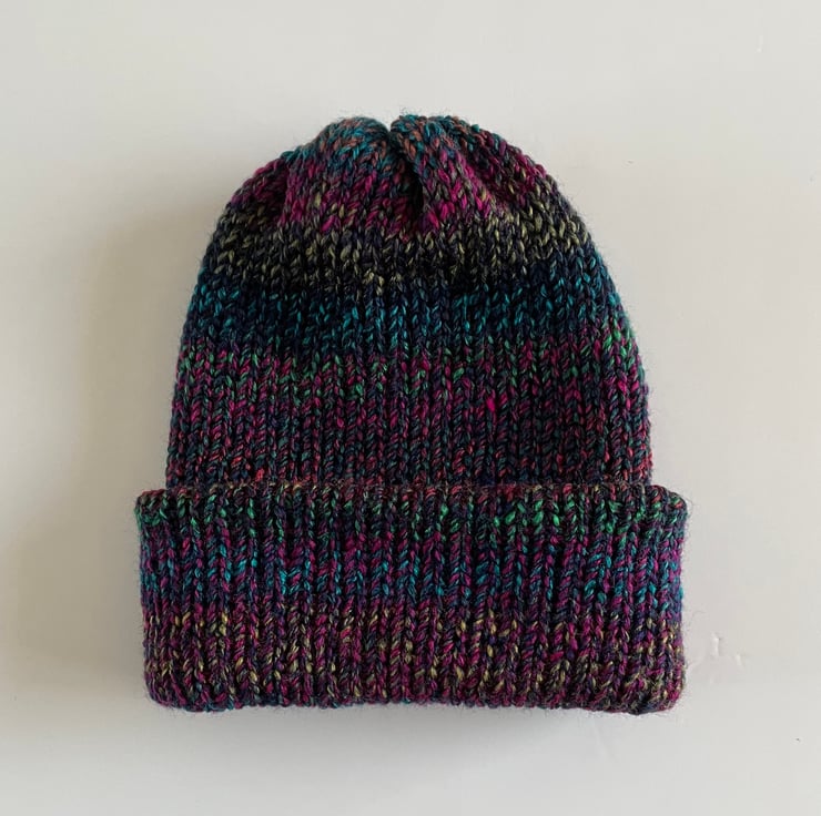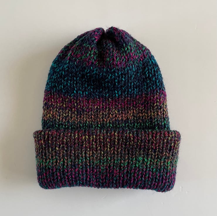 Stay warm and stylish this winter with this colourful beanie. This double-layered knitted hat is perfect for adding a touch of casual chic to a winter wardrobe. The soft yarn makes it comfortable to wear all day long, while keeping you warm and cosy.