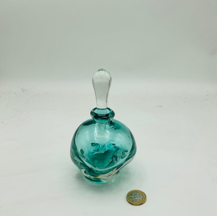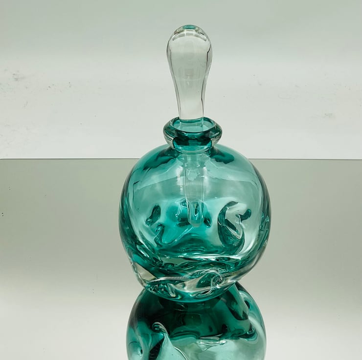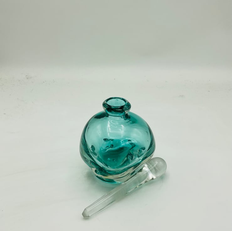 Green Tweak Bottle measuring 14cms high with stopper