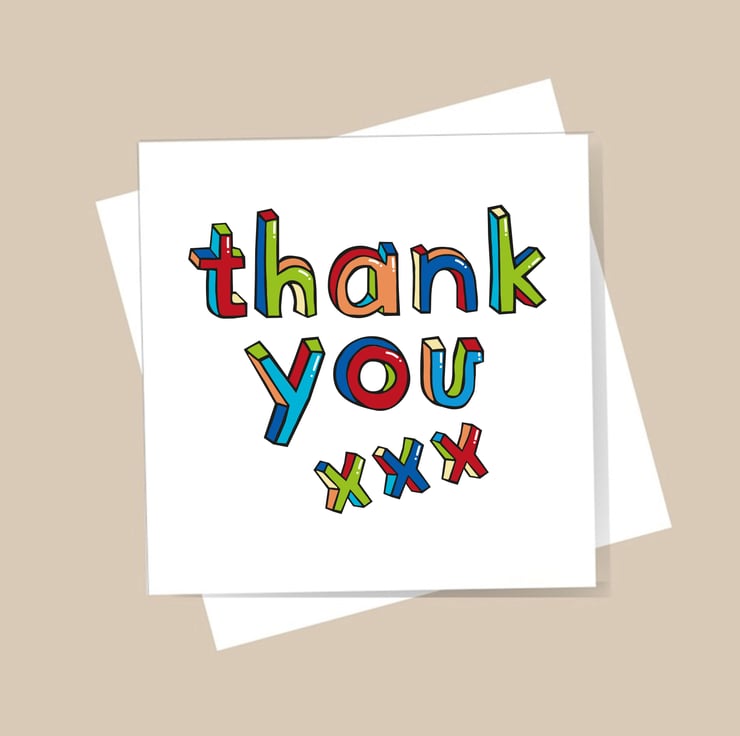 Perfect card to say thank you. simple, modern colourful design.