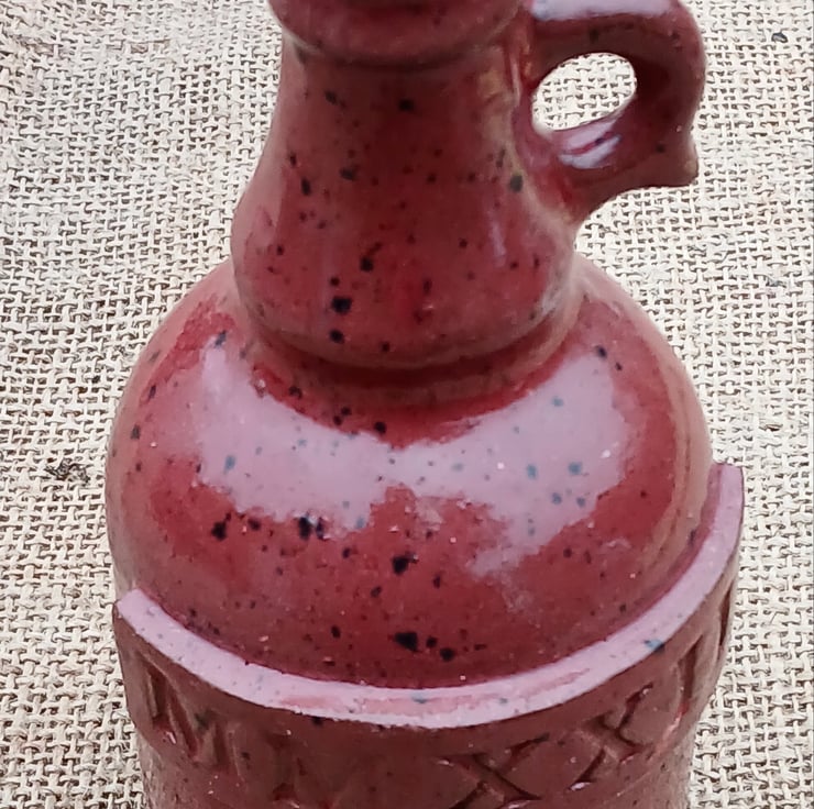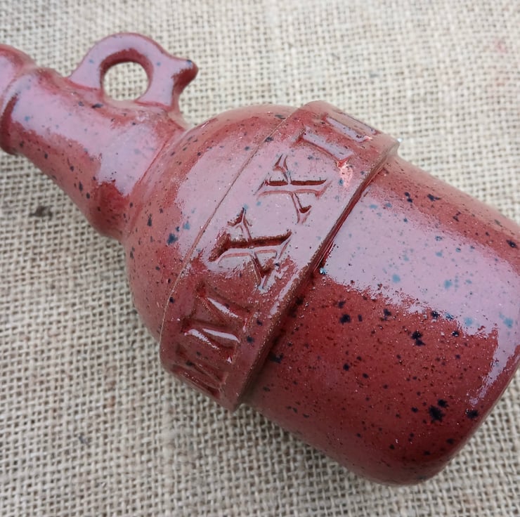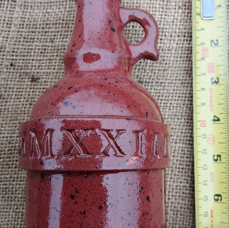 Handmade ceramic Witch Bottle with decorative glaze and Roman numeral inscription for the year 2023 ( when it was made)