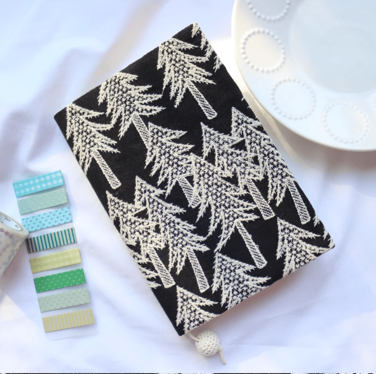 A6 book jacket, book sleeve, planner cover, or notebook cover, handcrafted with 100% cotton and featuring an embroidered cedar tree design. Suitable for notebooks measuring 14.8cm in height, 10.5cm in width, and 1-3.5cm in thickness. The weather is getting colder, so why not dress your journal in a cozy cover too?