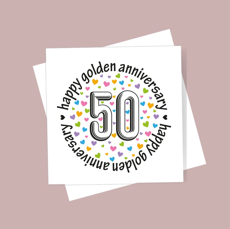 50th Wedding Anniversary card - golden anniversary, free postage, blank inside