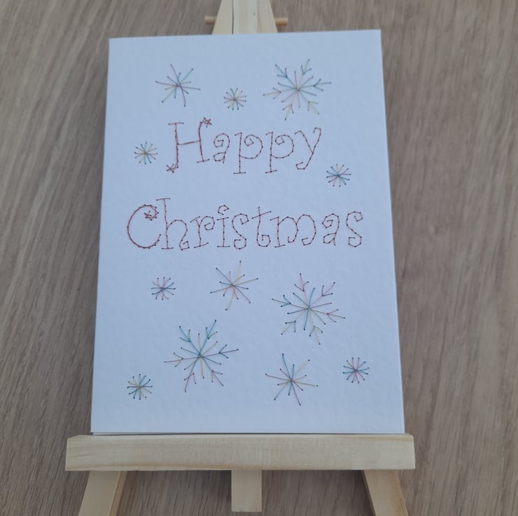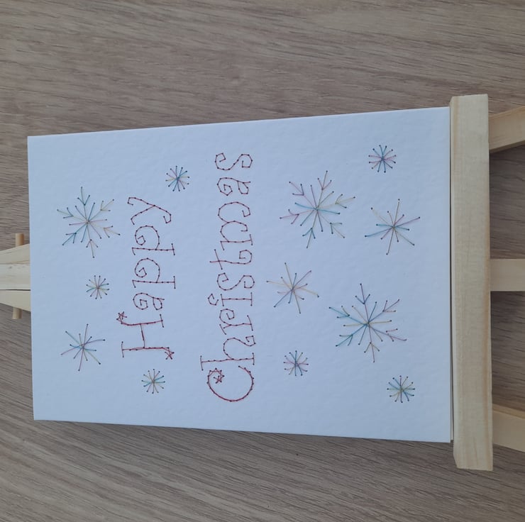 Hand stitched Christmas card. Size A6 on luxury hammered card