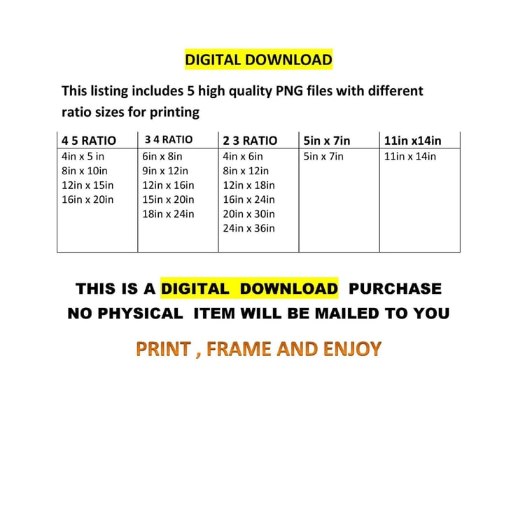 As soon as product purchased, original high quality printable version will be sent to buyer's email. Please when you purchased, send us your email.