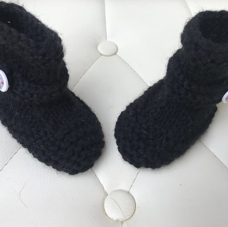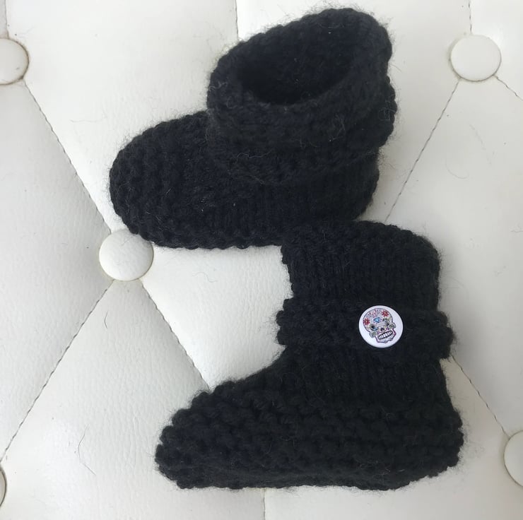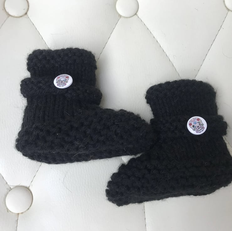 Hand knitted black booties perfect gift for any Biker / Goth parents expecting a baby .