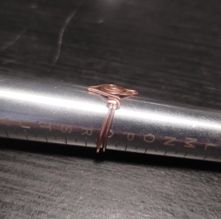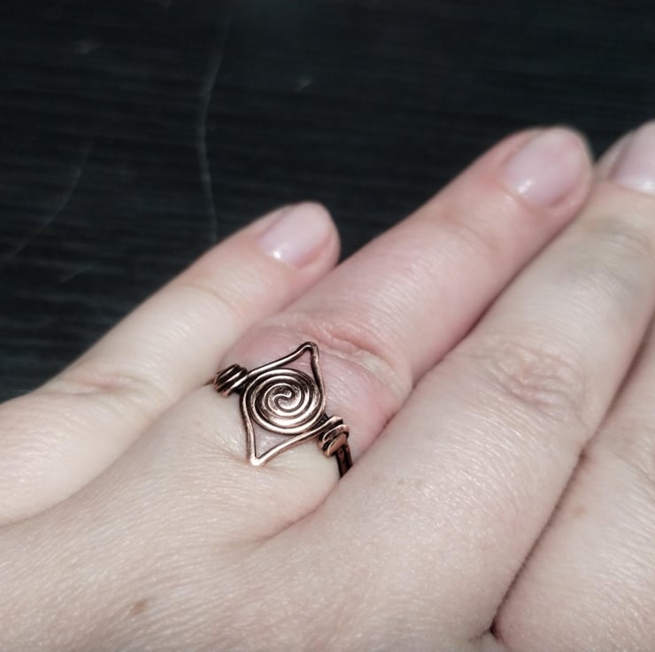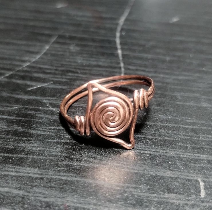 Pure copper ring in Viking swirl style. Inspired by genuine early medieval finds. Fully handmade, hand polished and finished with jeweller's wax to prevent tarnish. UK size Q.