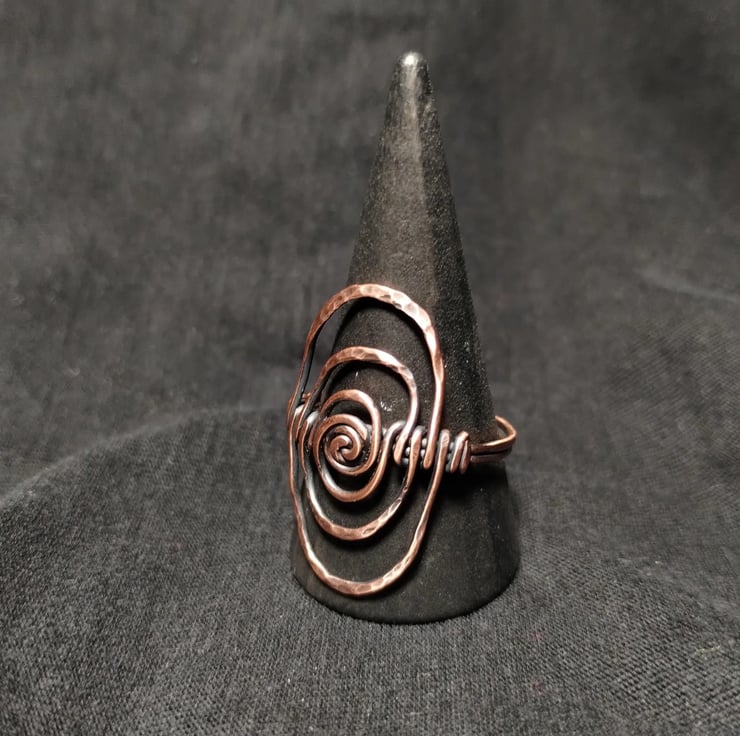Viking style pure copper ring in size T. 100% handmade. Aged effect and finished with jeweller's wax to prevent tarnishing and skin staining.
