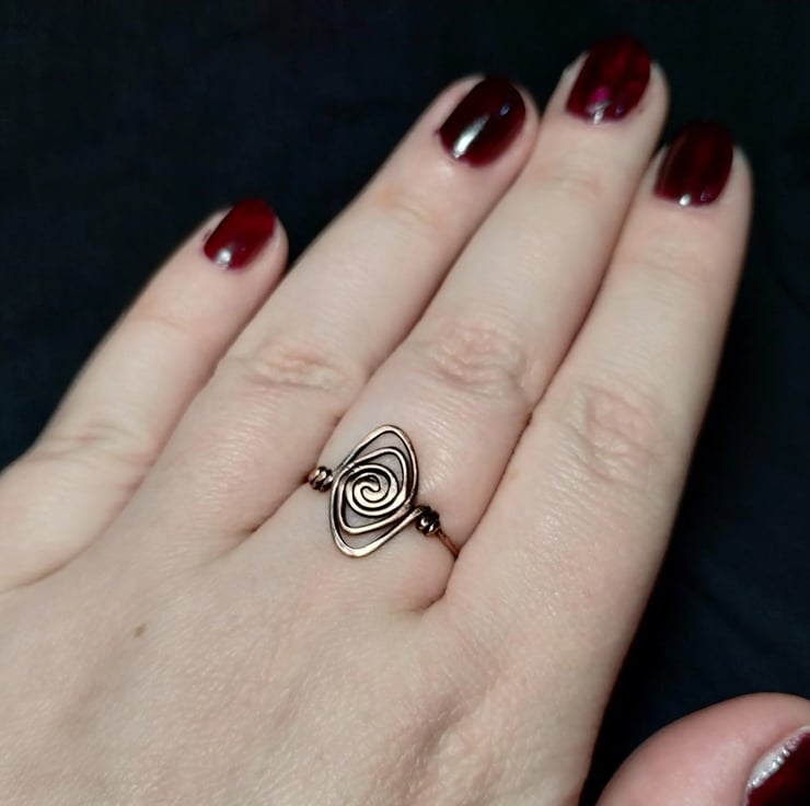 Viking style pure copper ring in size S. 100% handmade. Aged effect and finished with jeweller's wax to prevent tarnishing and skin staining.