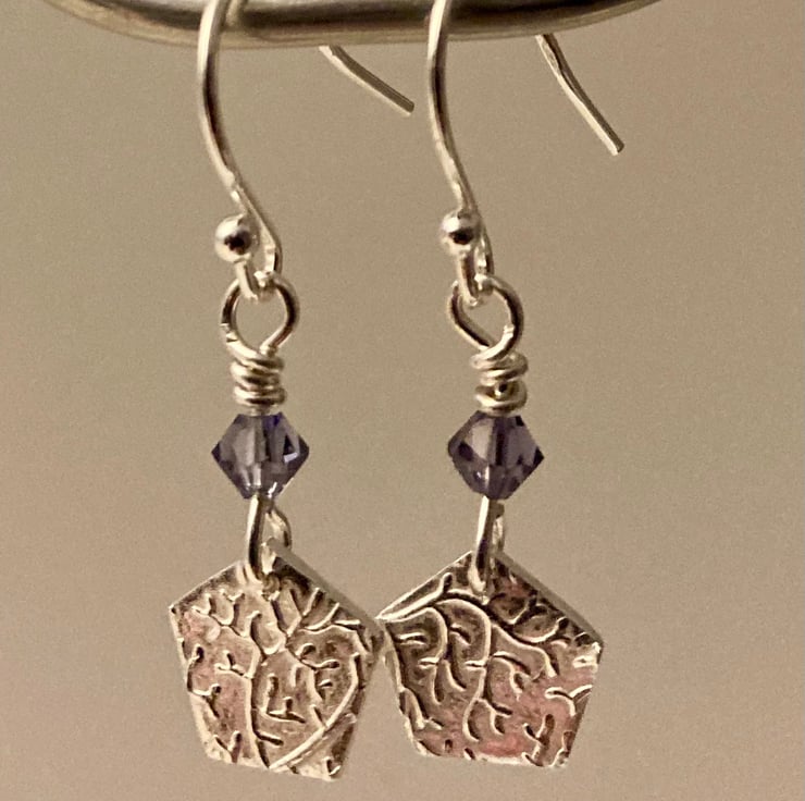Handmade in pure silver with sterling silver earwires. The beads are Swarovski crystal.
