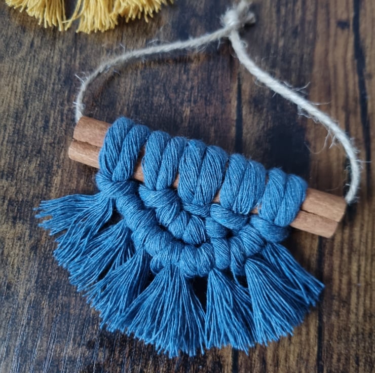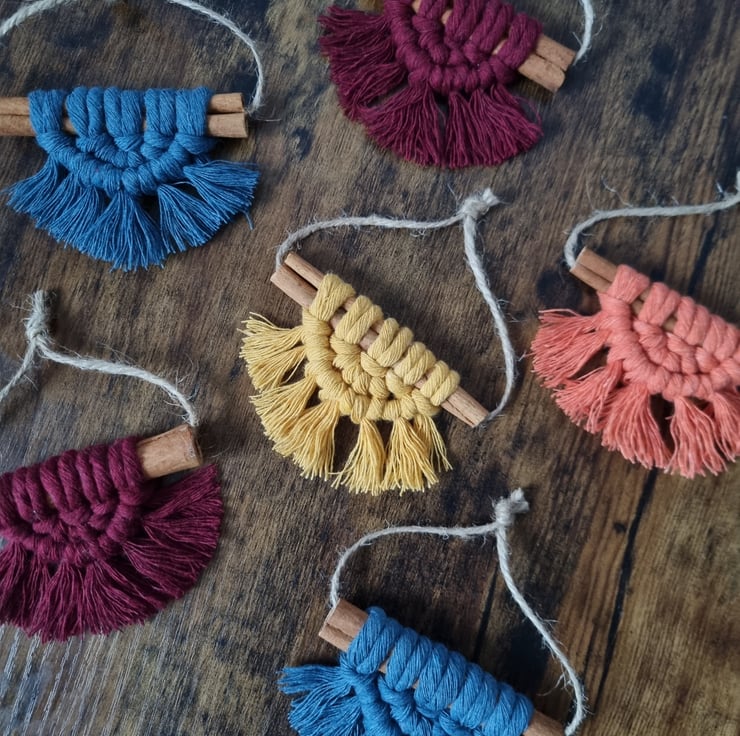 Set of 6 mini semi-circle macrame tree decorations.
