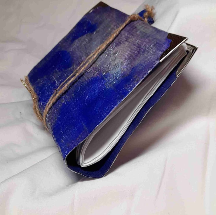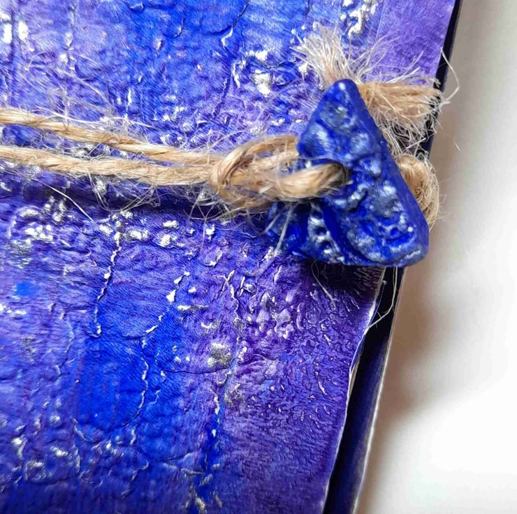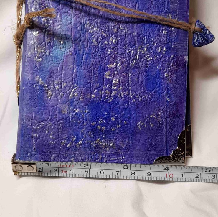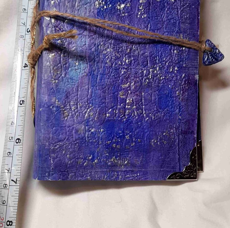 Beautiful hand crafted embossed journals, using card, paper, acrylic paint metal eyelets and corners and natural twine with a bit of sparkle