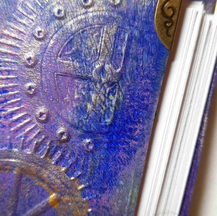 I love books, and I especially love books that I can write or draw in. I recycle everything that I can so with huge amounts of card to recycle I came up with the idea of making journals from it and so began my journal creations. I don't always find it easy to make something that looks good but using the embossing pads that I found has been exciting and I spend hours adding coloured layers or highlighting with metallic paints. I hope you like the journals as much as I do.