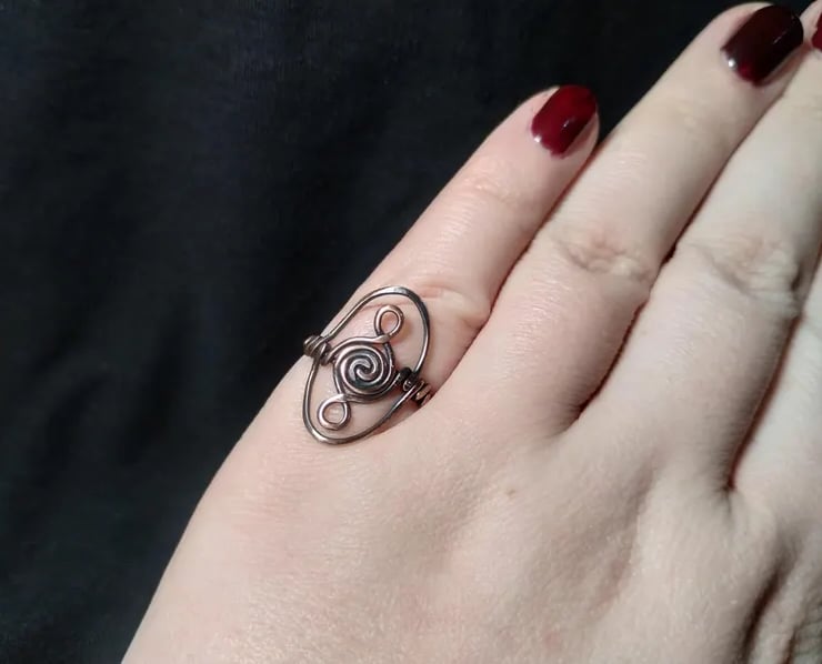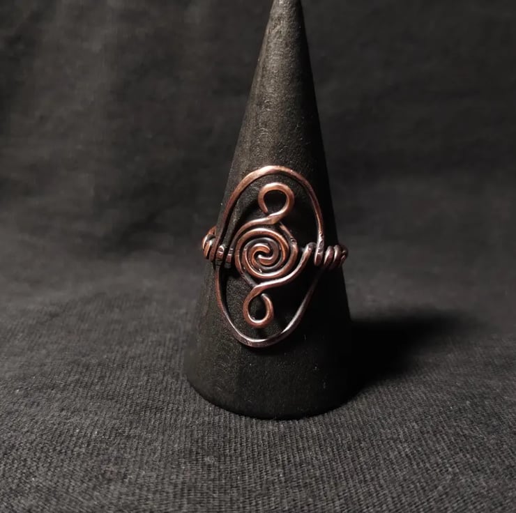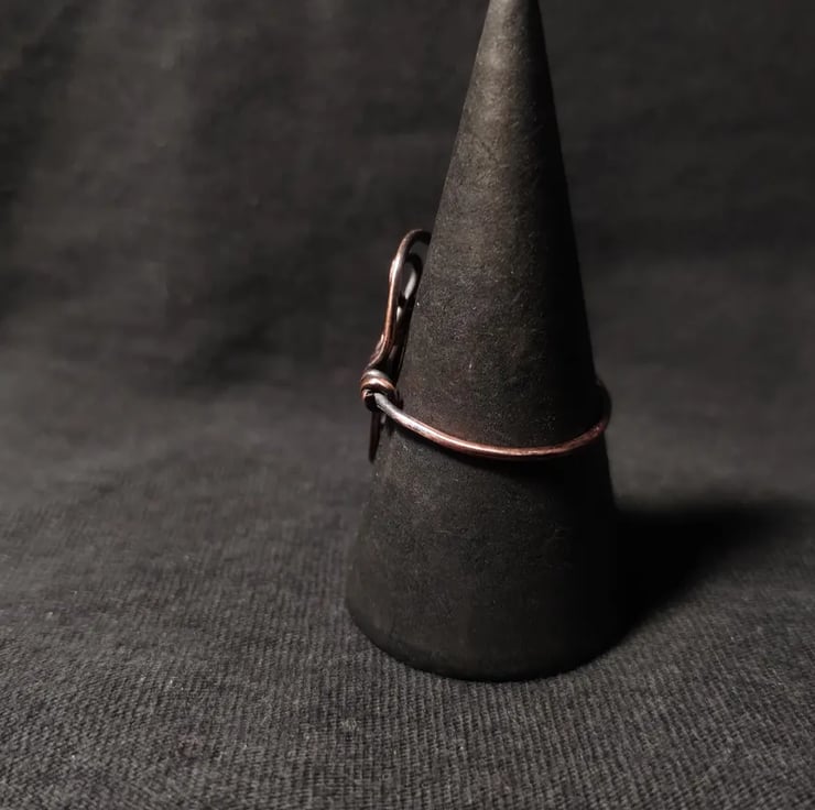 Viking style pure copper ring in size L. 100% handmade. Aged effect and finished with jeweller's wax to prevent tarnishing and skin staining.