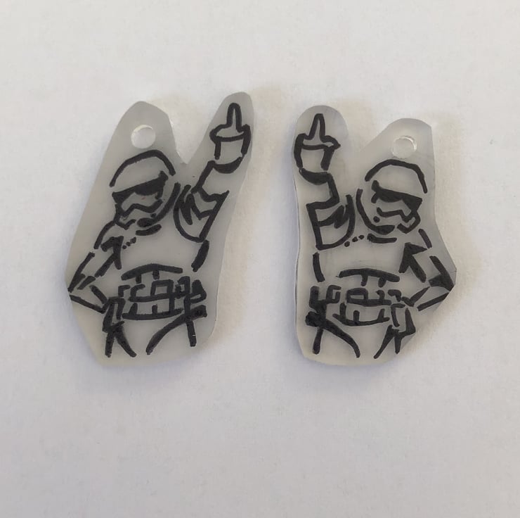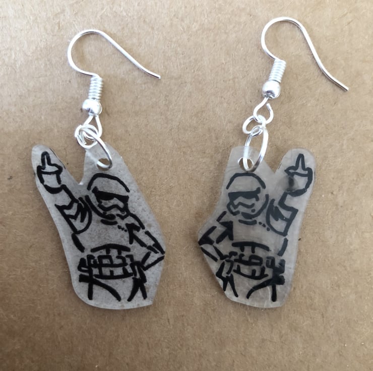 These supercute Star Wars earrings have some serious attitude. They measure approximately 2cm x 1.5 cm and are made from lightweight, durable shrink plastic, mounted on silver links.