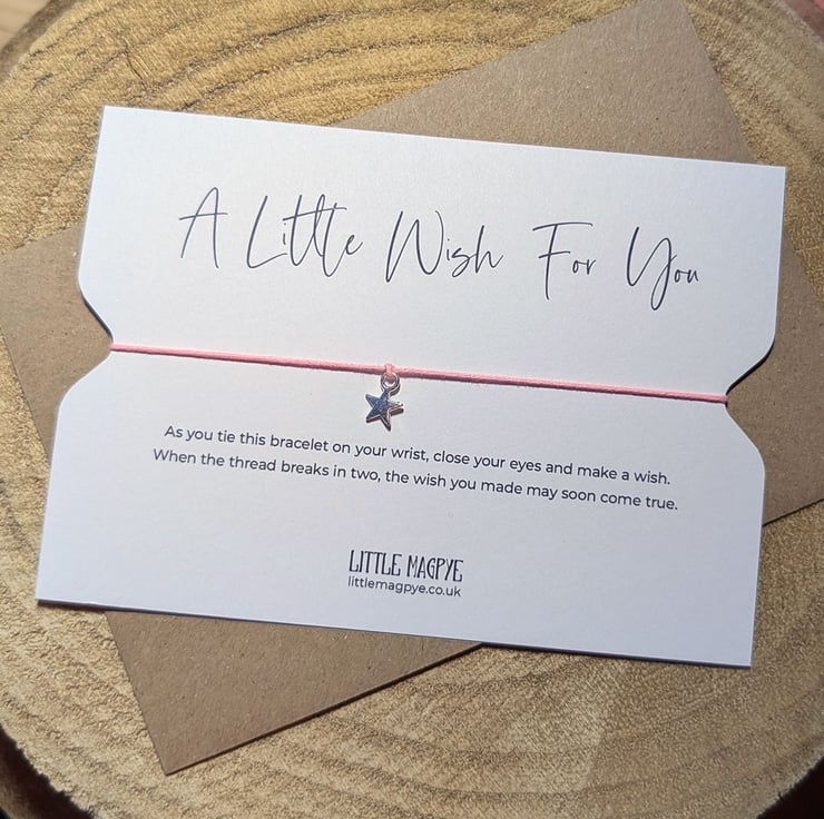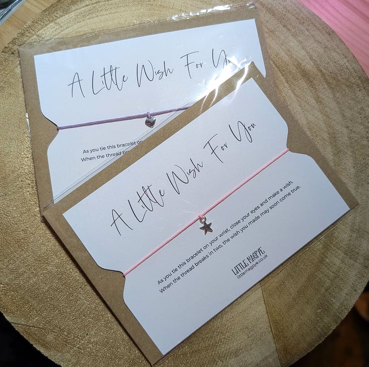I have made these wish bracelets since my now adult daughter was a child, first as gifts for teachers and then to sell. They have been one of my best sellers ever since and make fantastic stocking fillers, wedding favours and letterbox gifts.